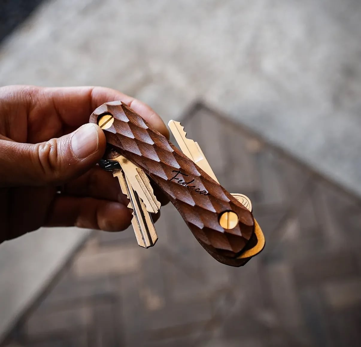 ネジを調整することで、鍵の追加や取り外しが簡単におこなえ、最大5枚まで収納可能。