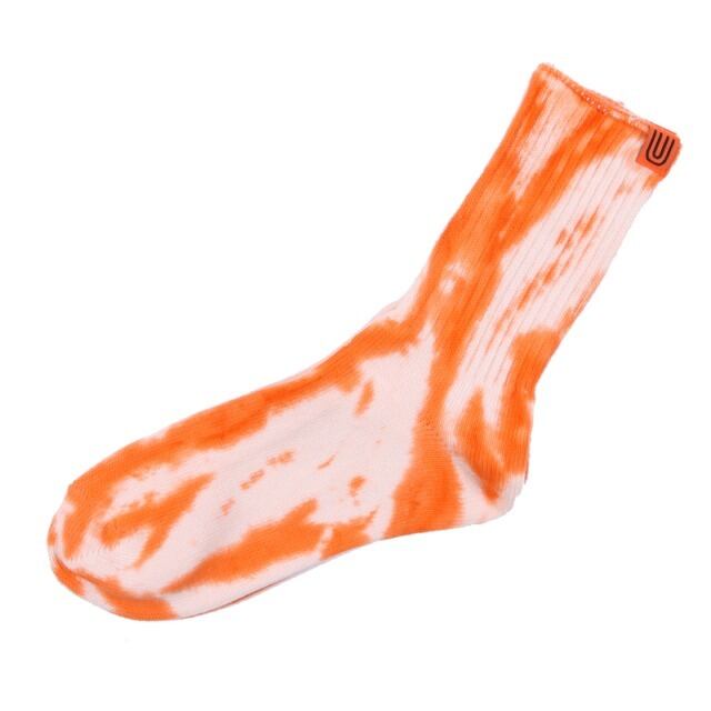 UNIVERSALOVERALL(ユニバーサル オーバーオール)からタイダイソックスが登場。 一年中履いて頂ける程良い厚みで使いやすく、どんな着こなしにもマッチするアイテム。 ソックスのラインが、コーディネートのアクセントに◎