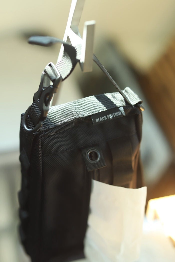 別売のハンギングチェーンやバッグなどにも横かけできるように設計。
