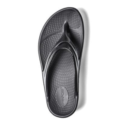 OOFOS(ウーフォス)を象徴する最も人気の高いビーチサンダルタイプの厚底シリーズであるOOmega(ウーメガ)のBLACK(ブラック)カラーです。