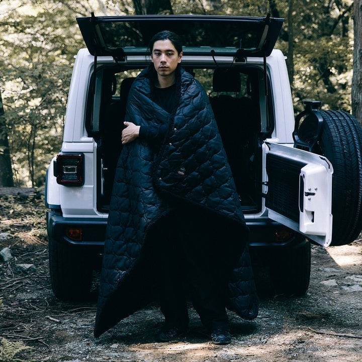 フロントボタンでポンチョ、両サイドのボタンで寝袋スタイルにも変身!寝転びながらの作業や車中泊にも最適です。