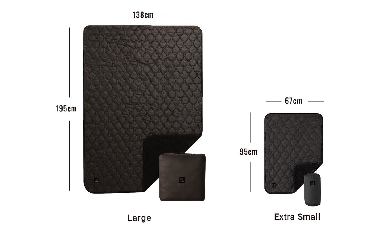 約138×195 cmのLサイズは、ミニバンの車内シートやベッドにもぴったり。男性が使用しても足元までしっかり覆えます。
