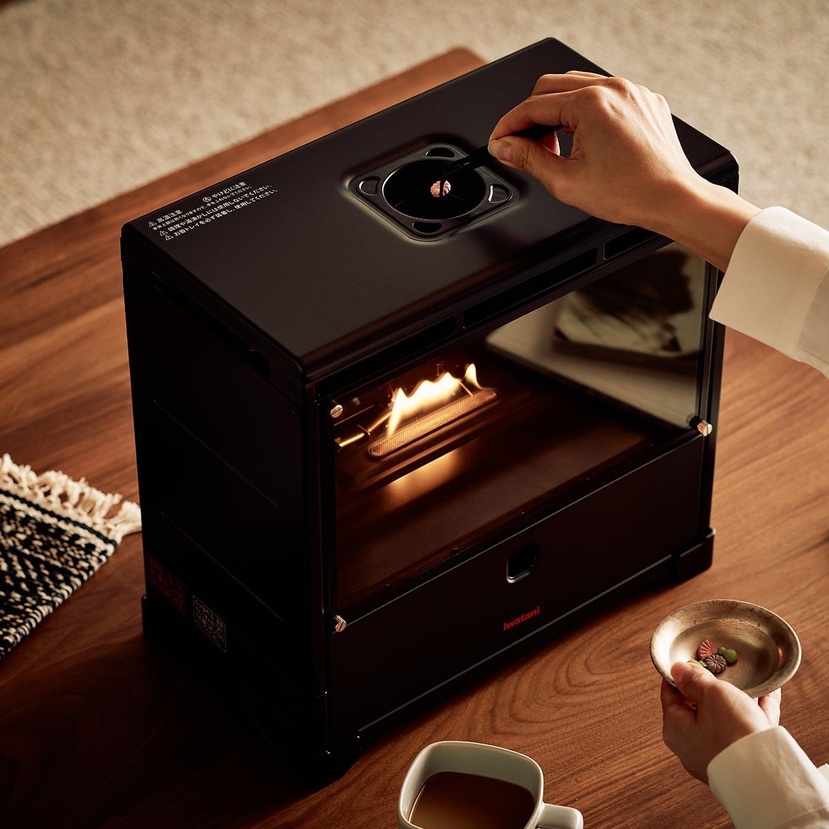 MYDANROは、カセットガス式なので、工事やメンテナンス、設置スペースの心配がありません。カセットガスと電池を入れるだけで、本物の炎を家の中で安心して楽しめる徹底した安全設計です。