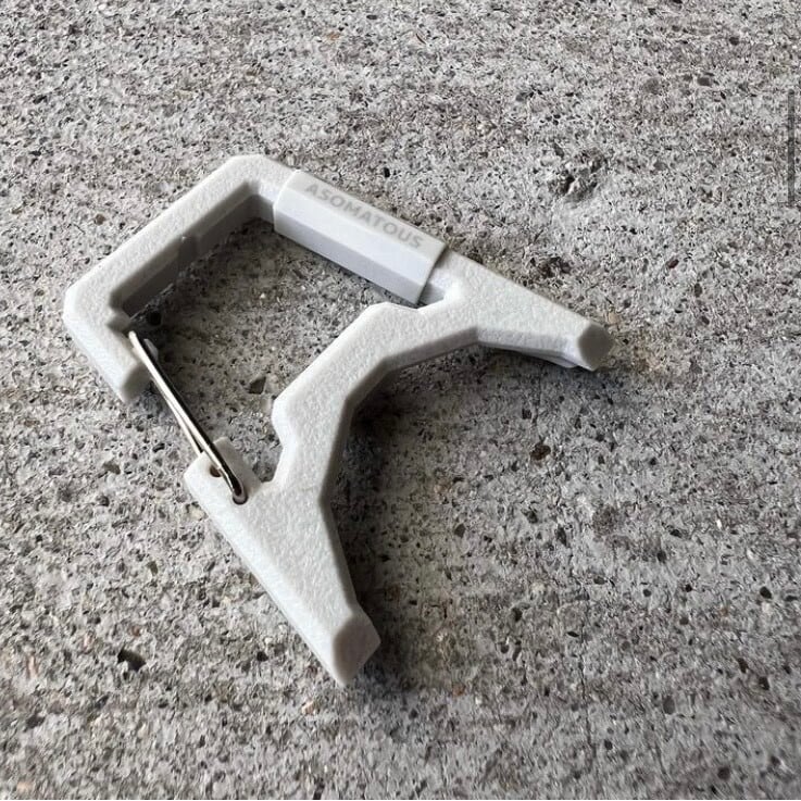 あくまでも現状の形を変えず、簡単にかつ可能な限りコンパクトにカラビナ化させることを目標に一からデザインを設計。