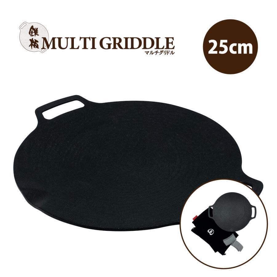 ソロキャンプ、デュオキャンプに丁度いいサイズ、直径25cmの鉄板マルチグリドル。
