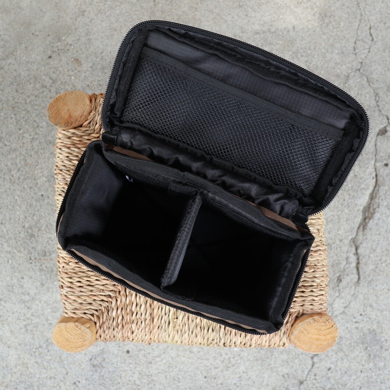 蓋裏にはメッシュポケットがついているので、ちょっとしたマドラーなんかを入れても便利。
